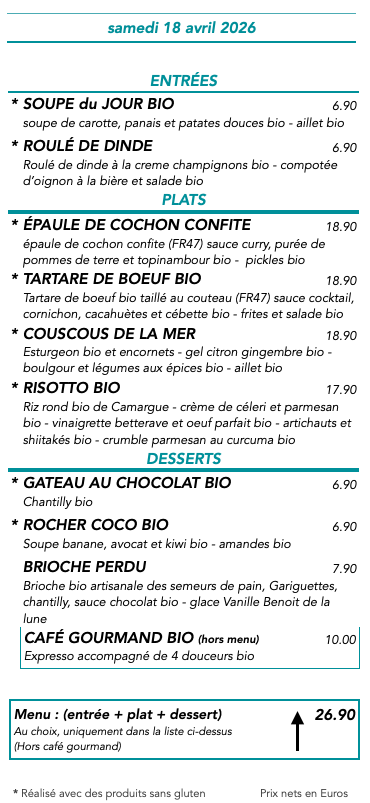 le menu du soir est publié au plus tard à 18h - merci de bien regarder la date qui figure sur le menu - des changements de dernières minutes peuvent survenir merci de votre compréhension
